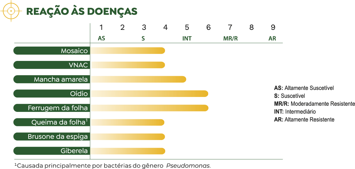 - Ter mosaico, VNAC* e giberela como doenças-alvo